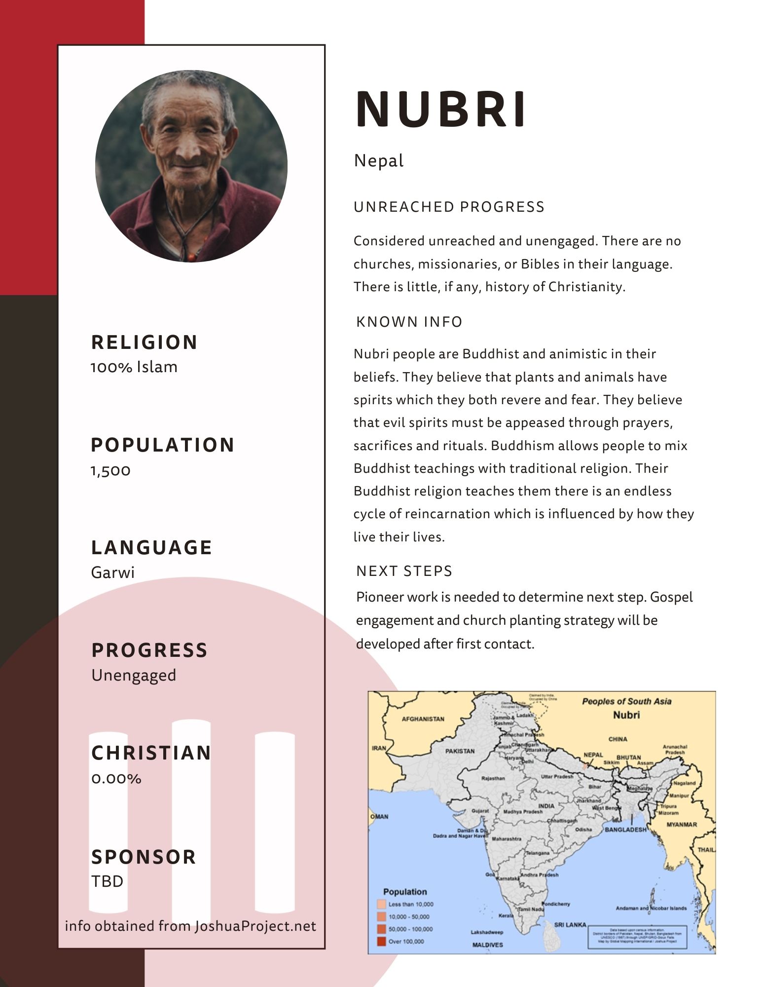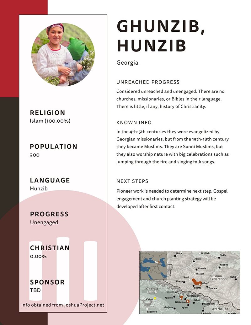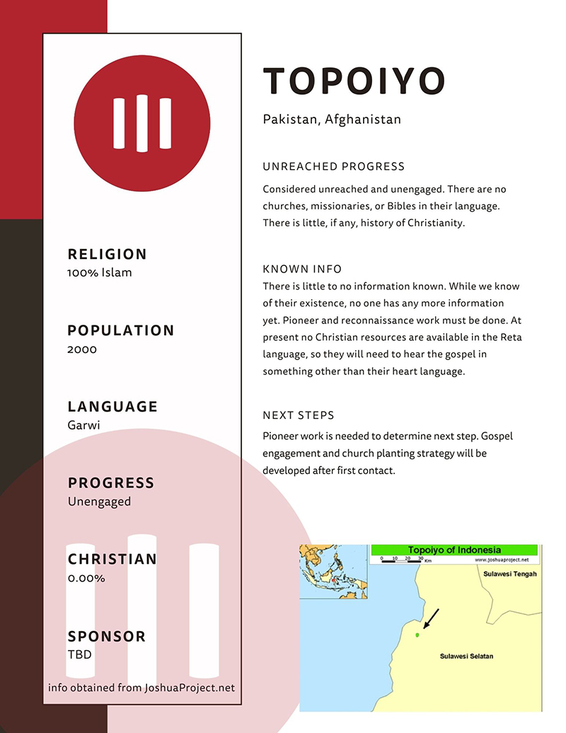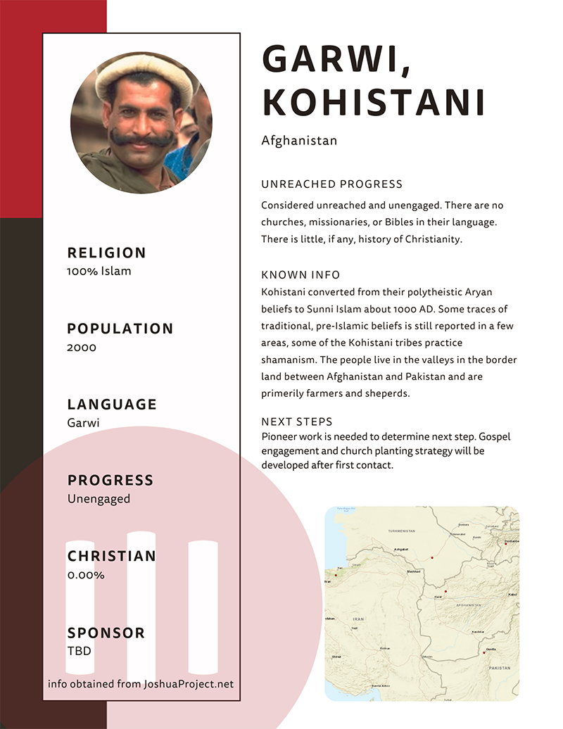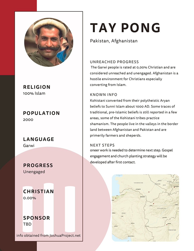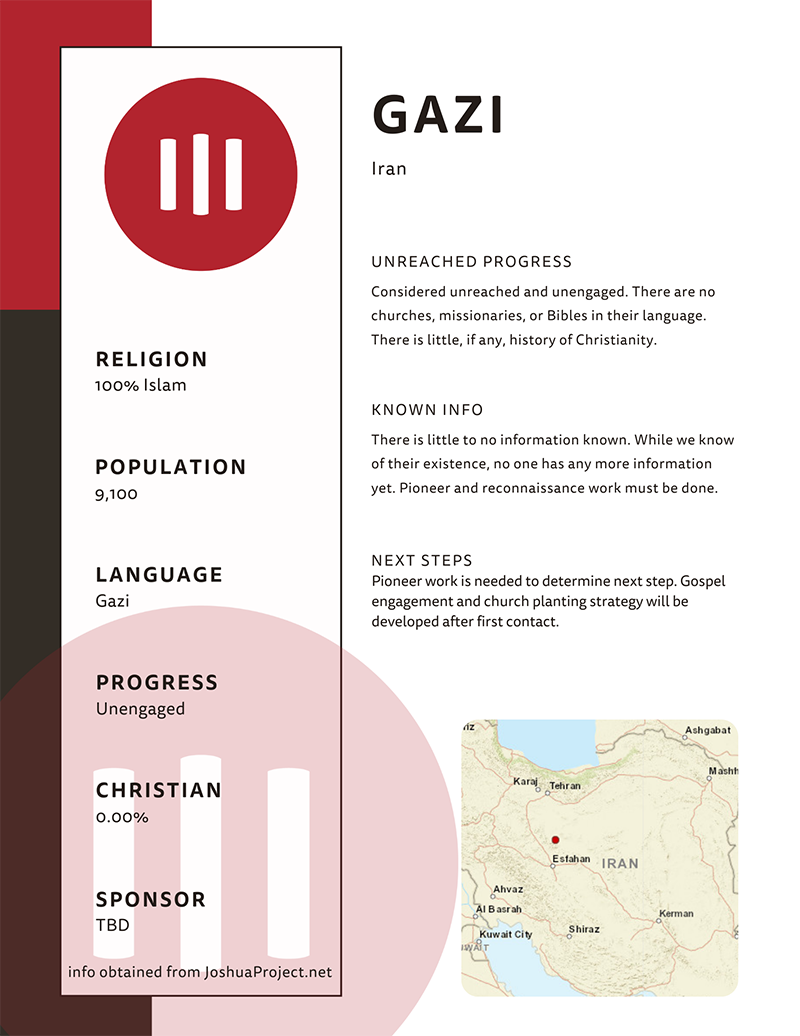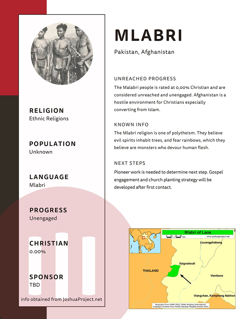 The people groups with a star below have a pioneer ready to visit them and are in need of a sponsor.