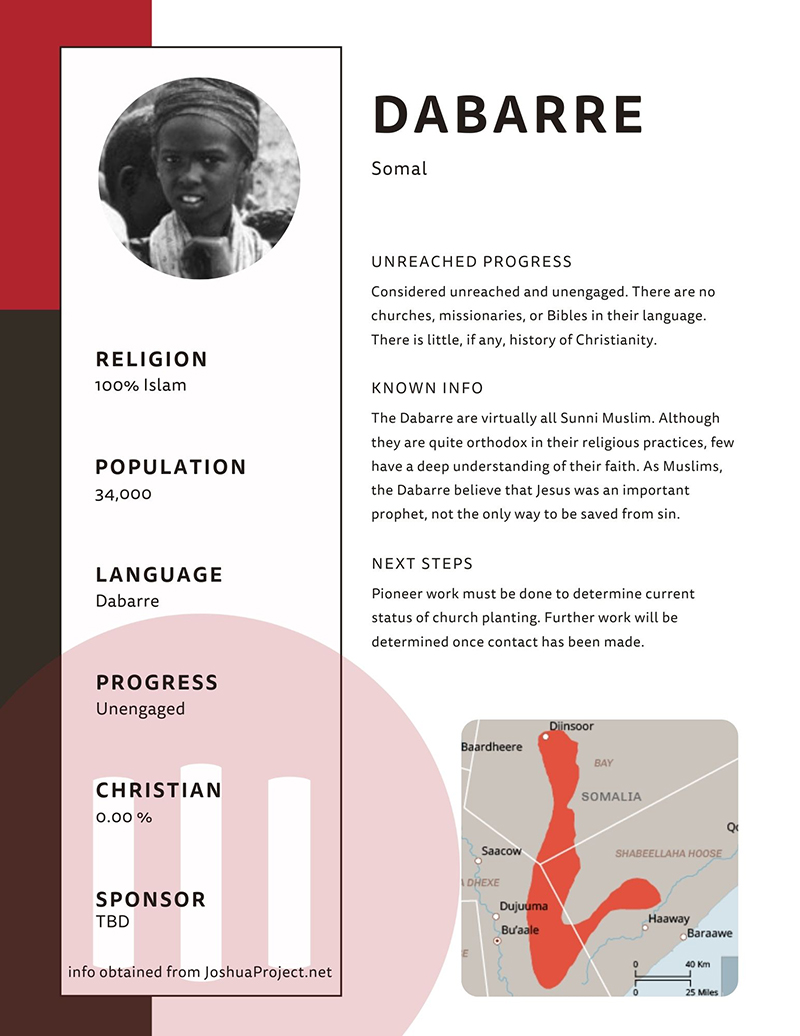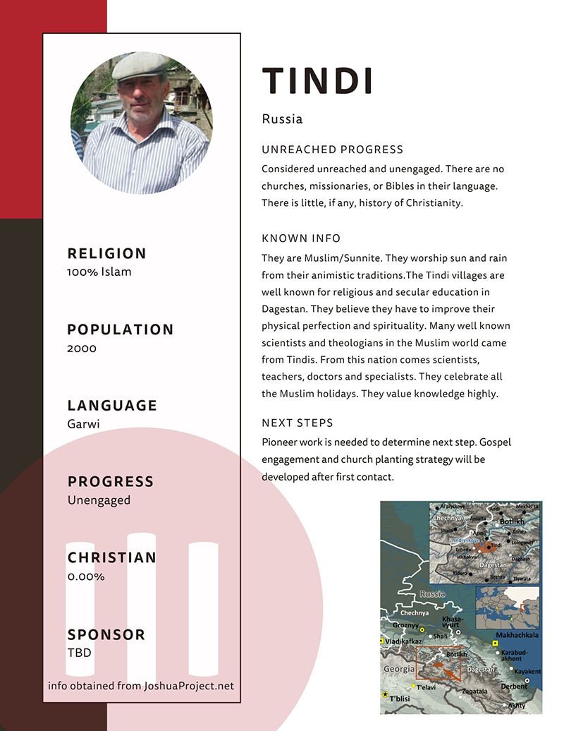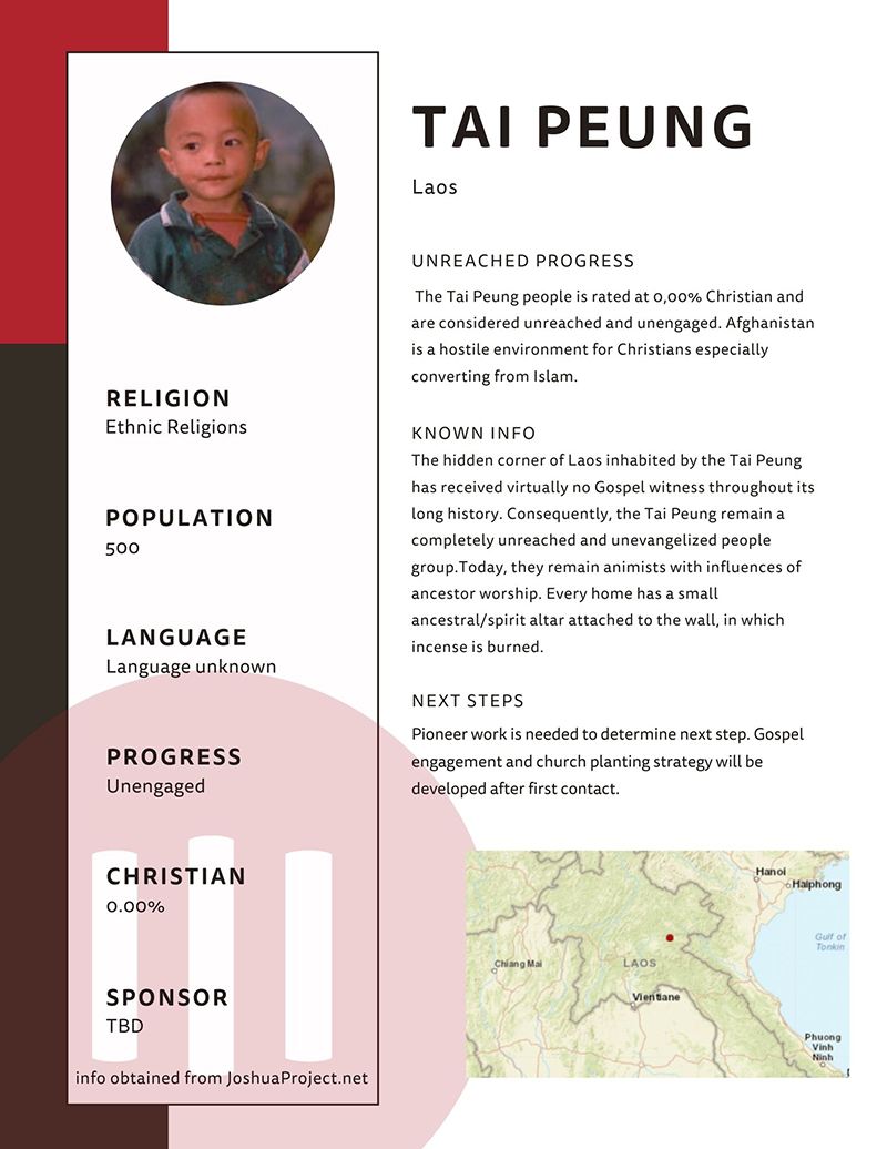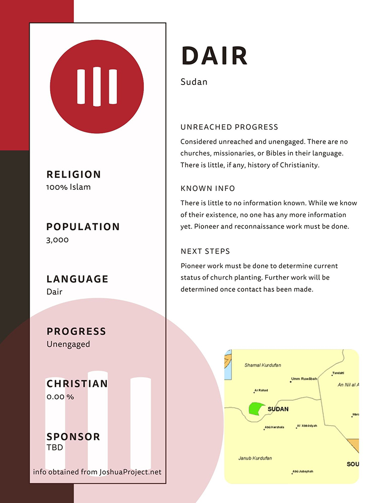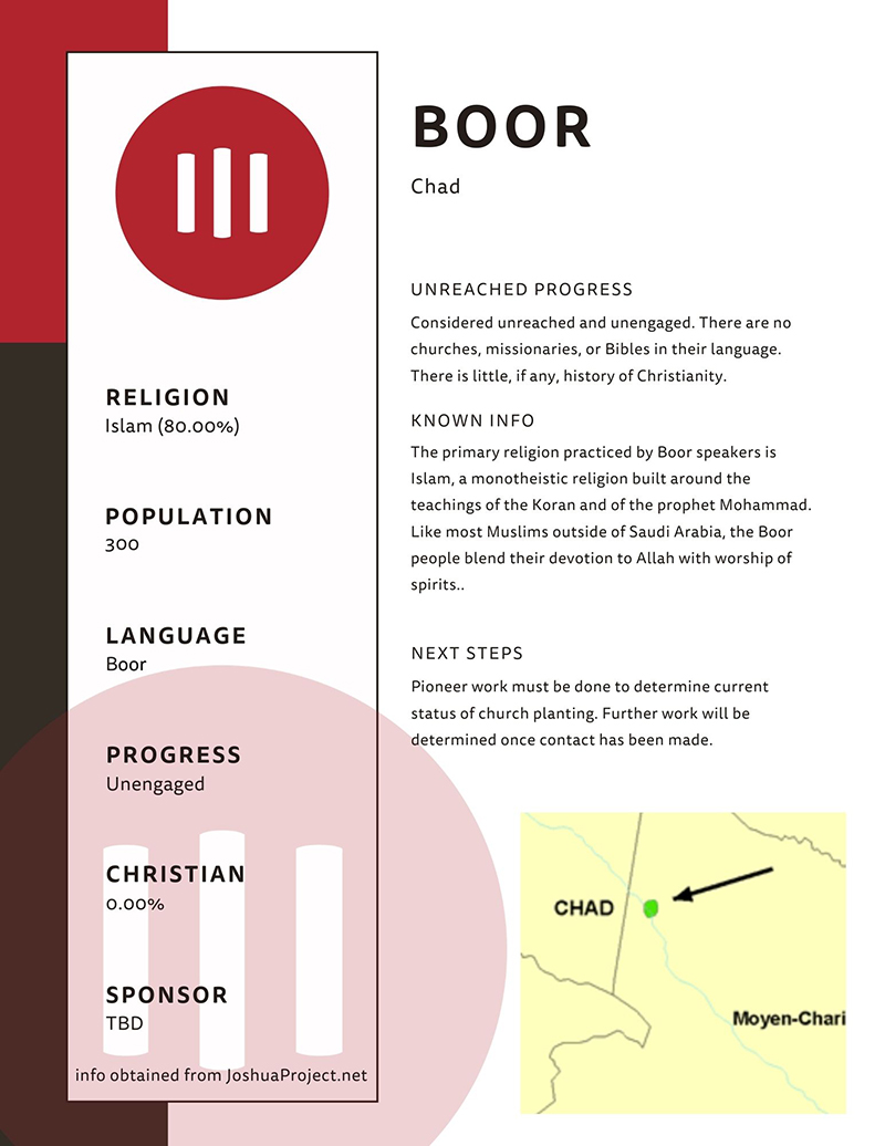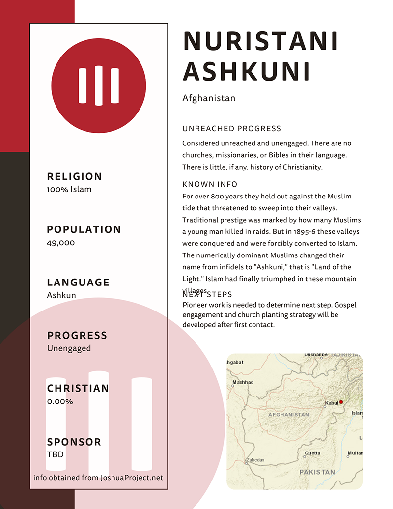 The people groups with a star below have a pioneer ready to visit them and are in need of a sponsor.