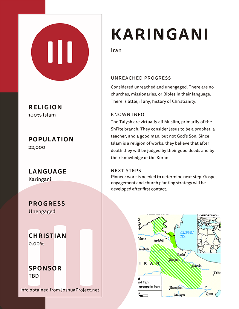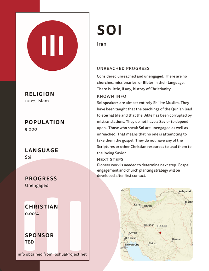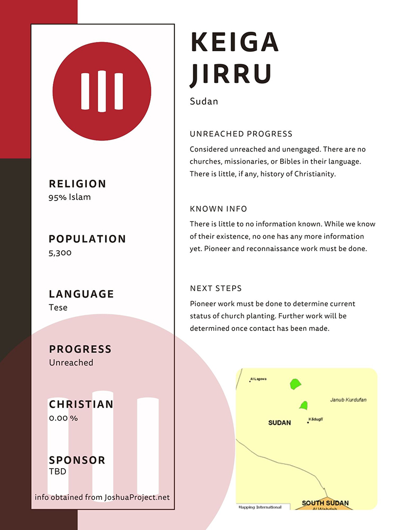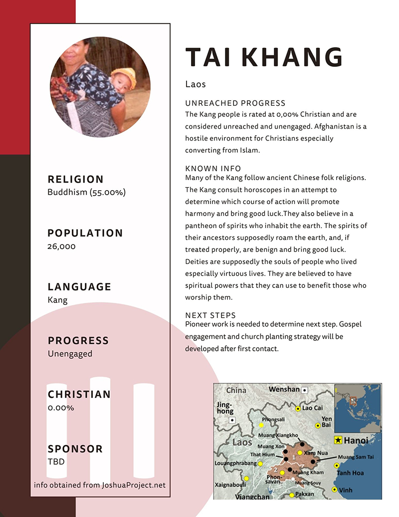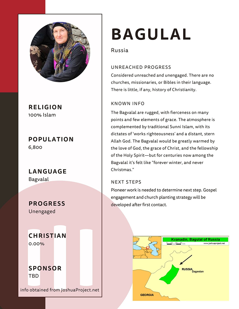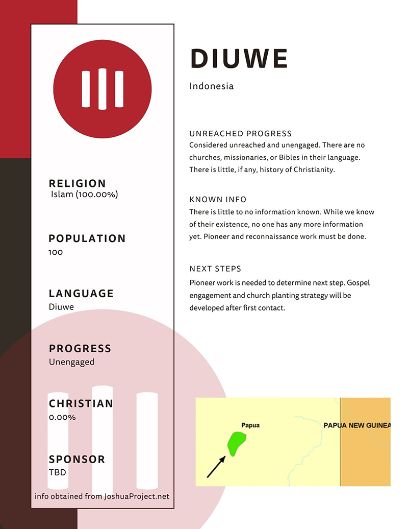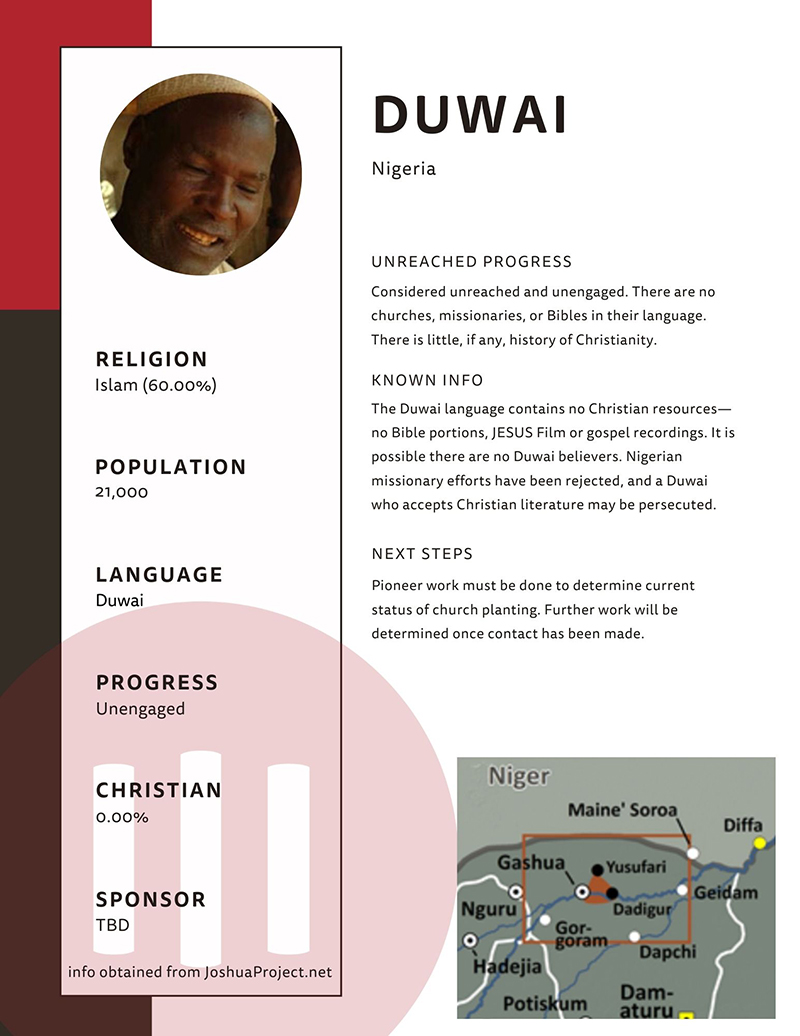 The people groups with a star below have a pioneer ready to visit them and are in need of a sponsor.