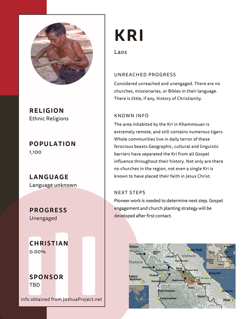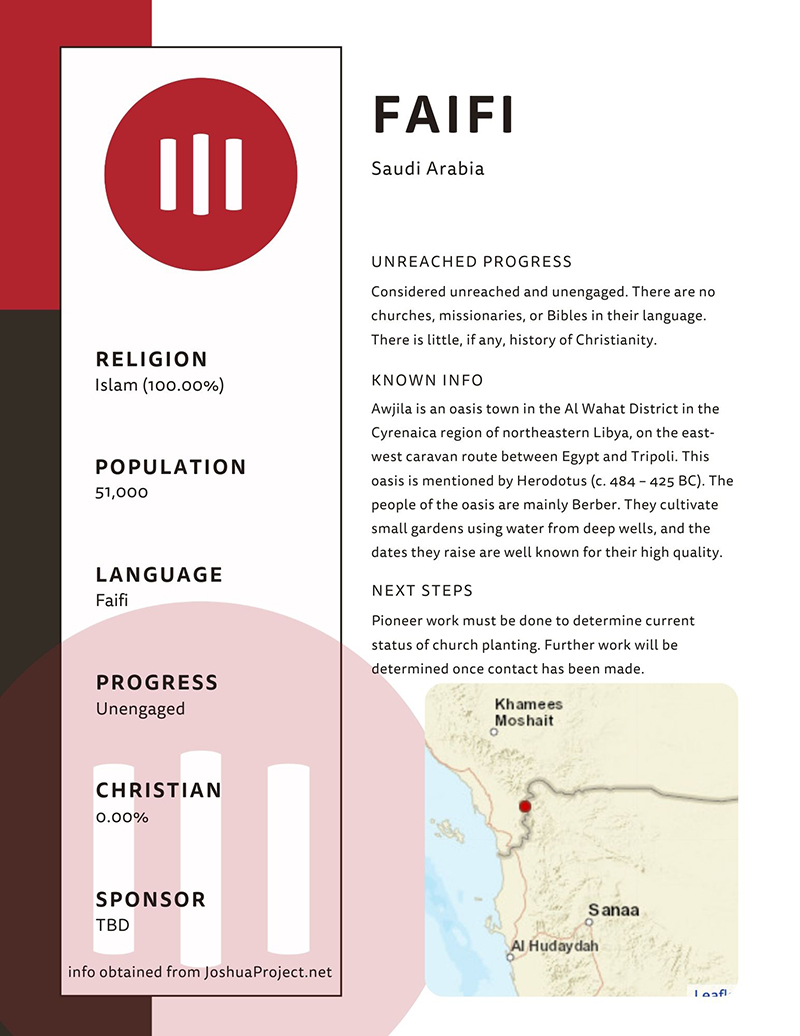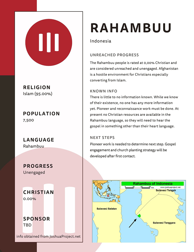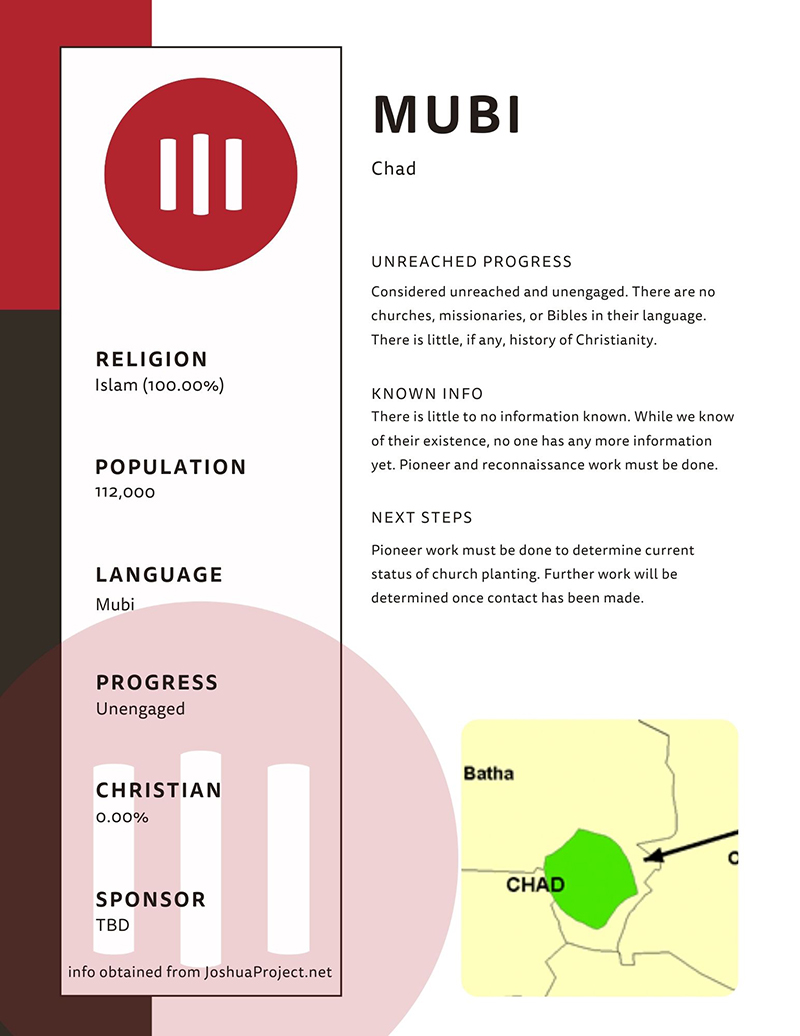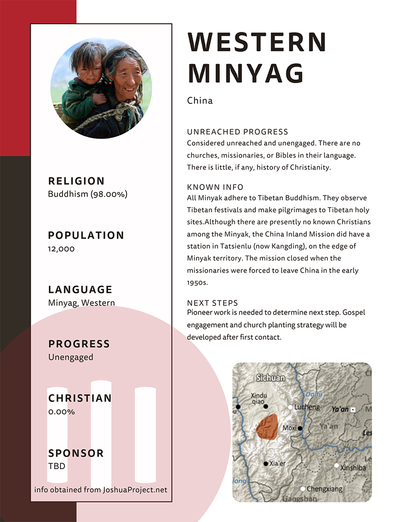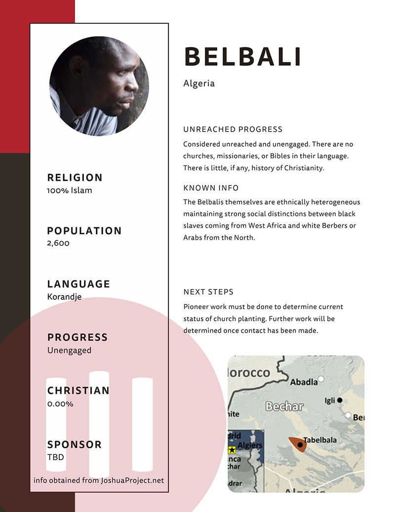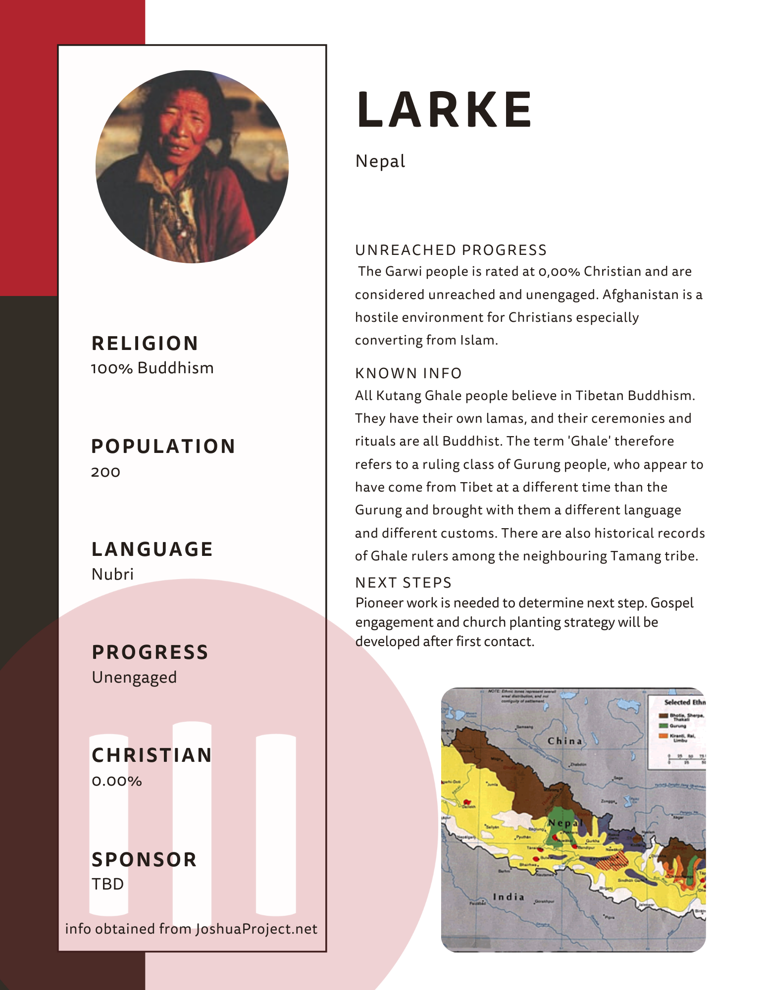 The people groups with a star below have a pioneer ready to visit them and are in need of a sponsor.