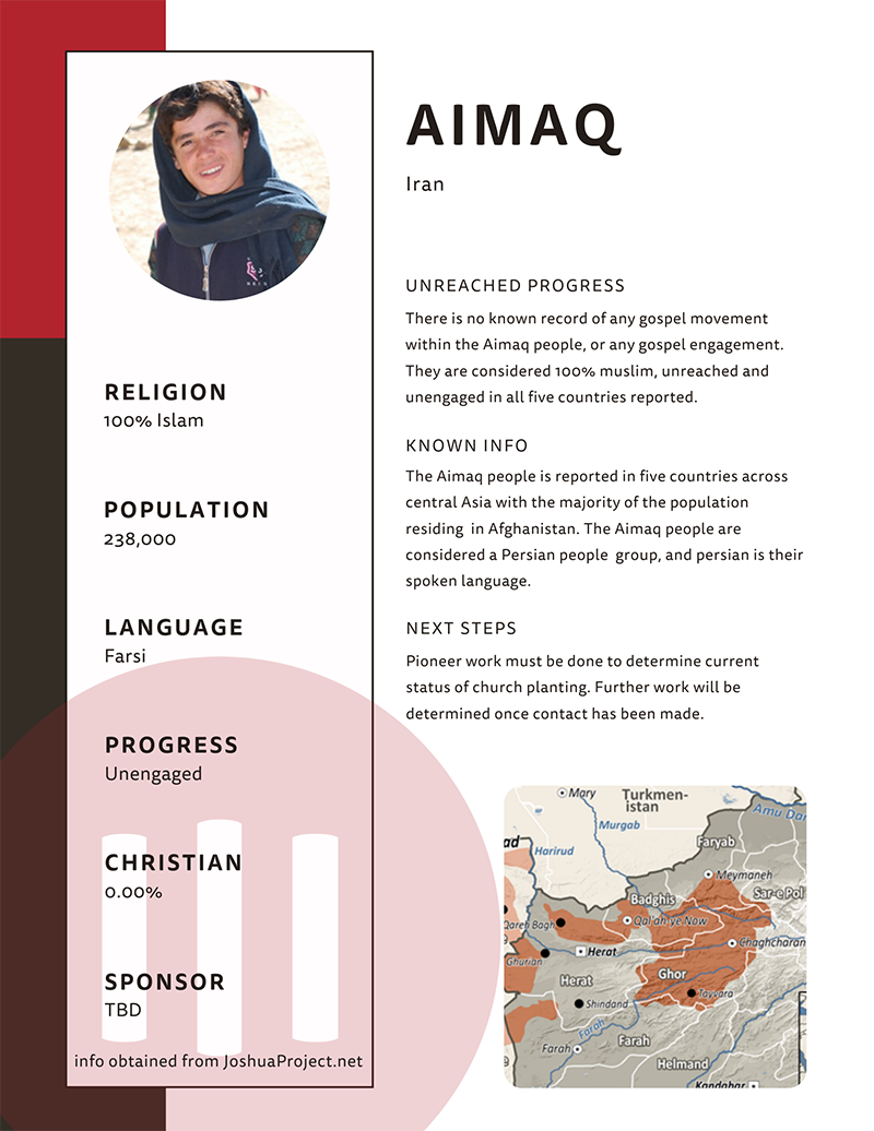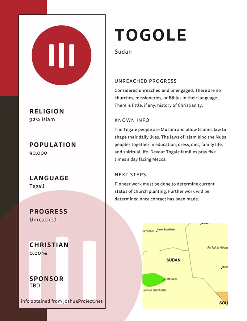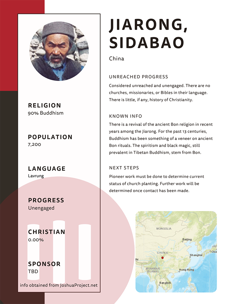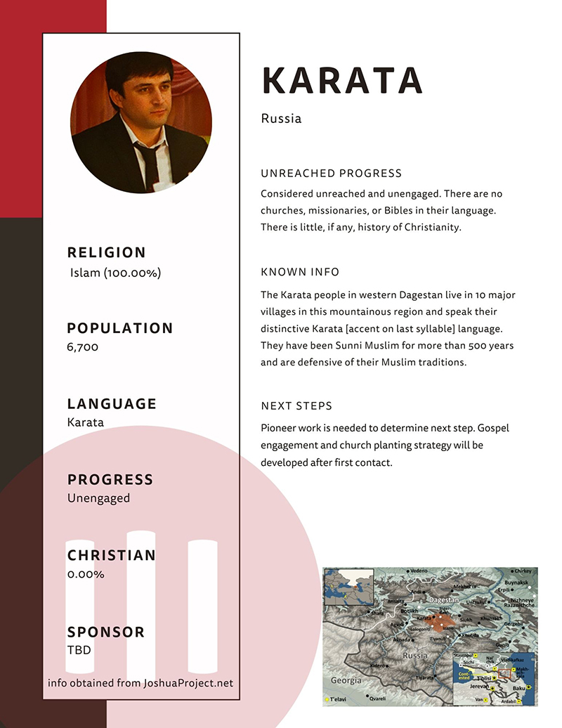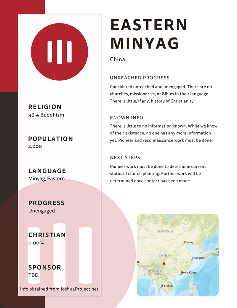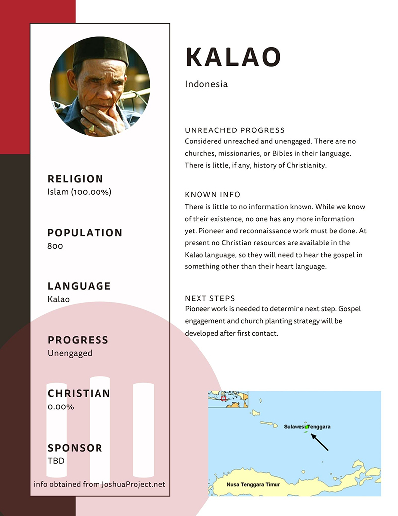 The people groups with a star below have a pioneer ready to visit them and are in need of a sponsor.