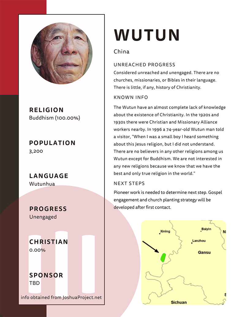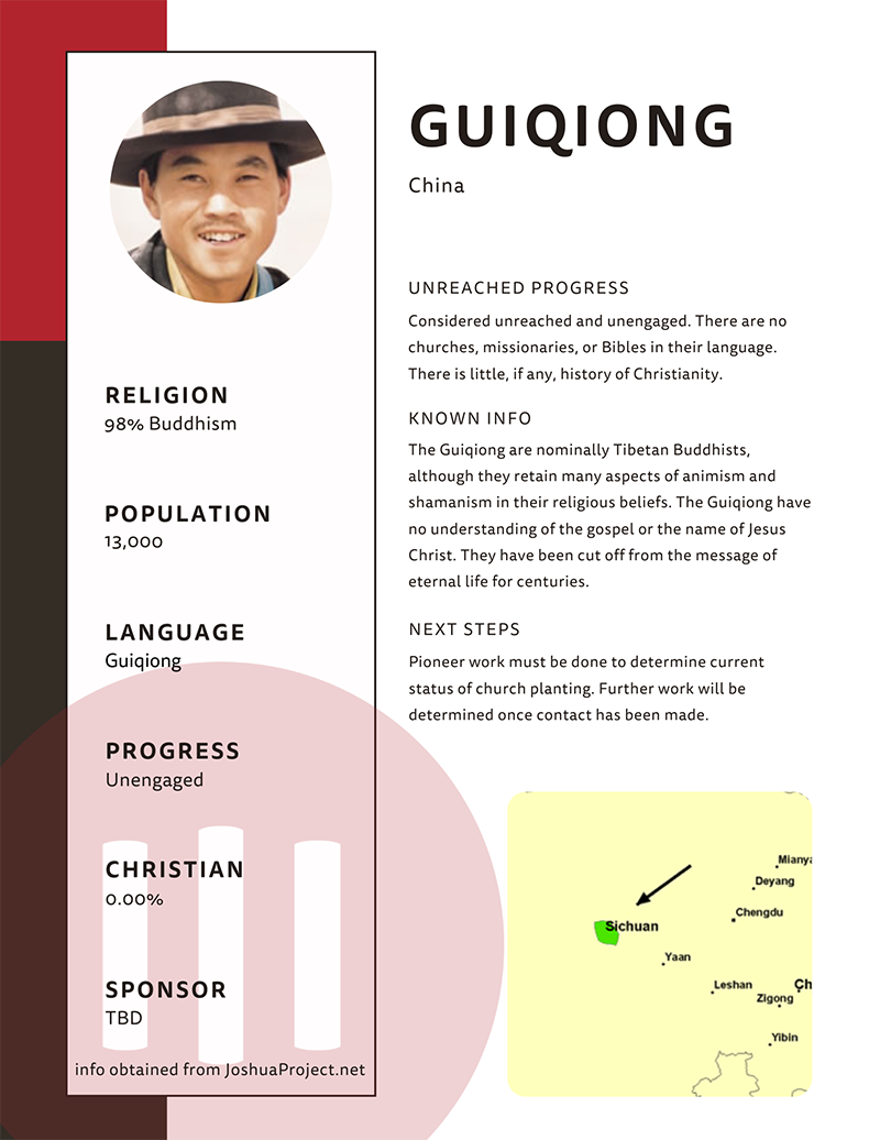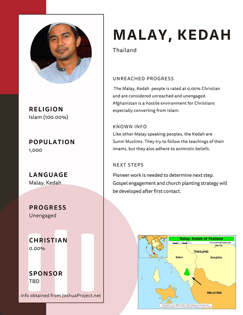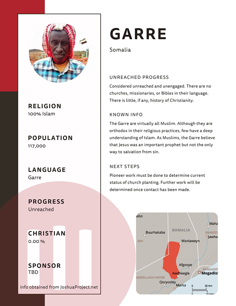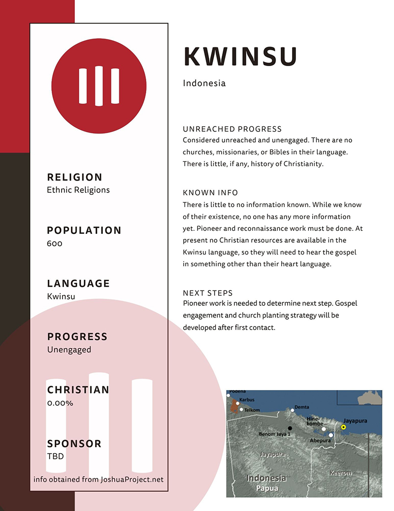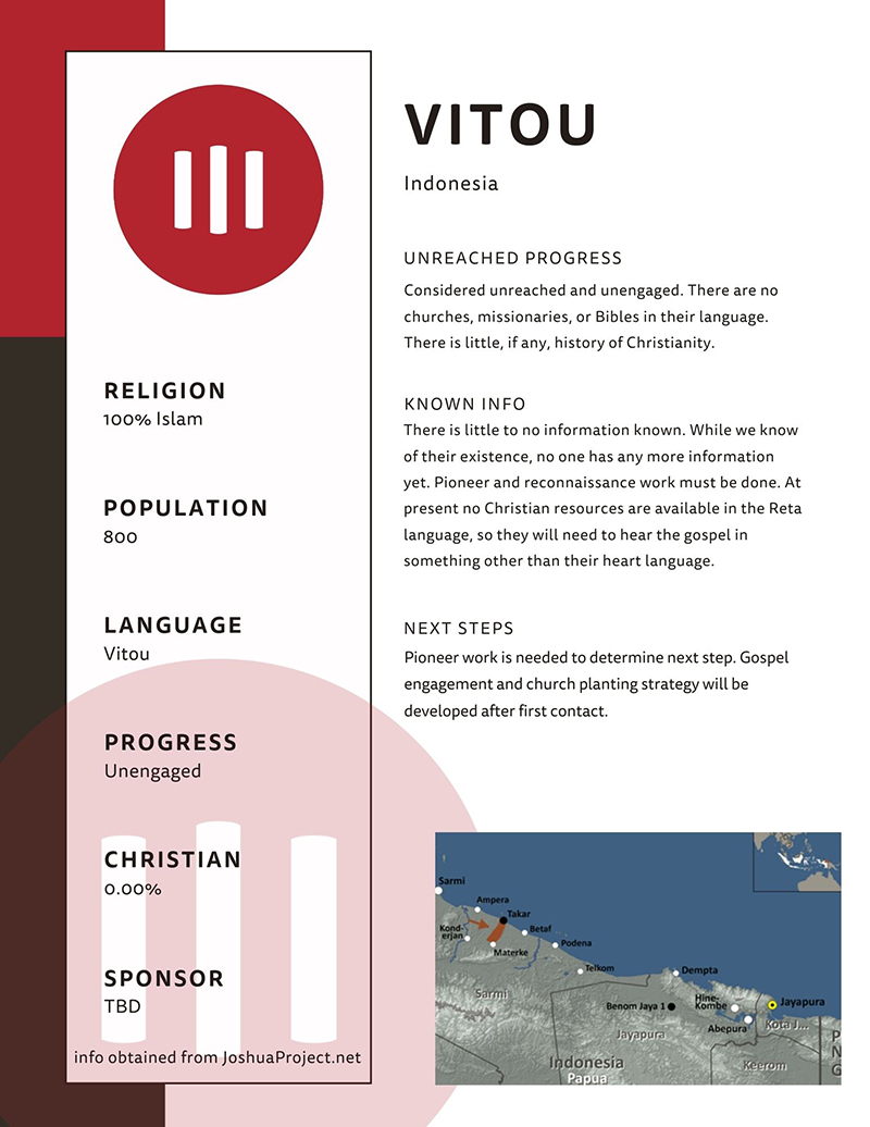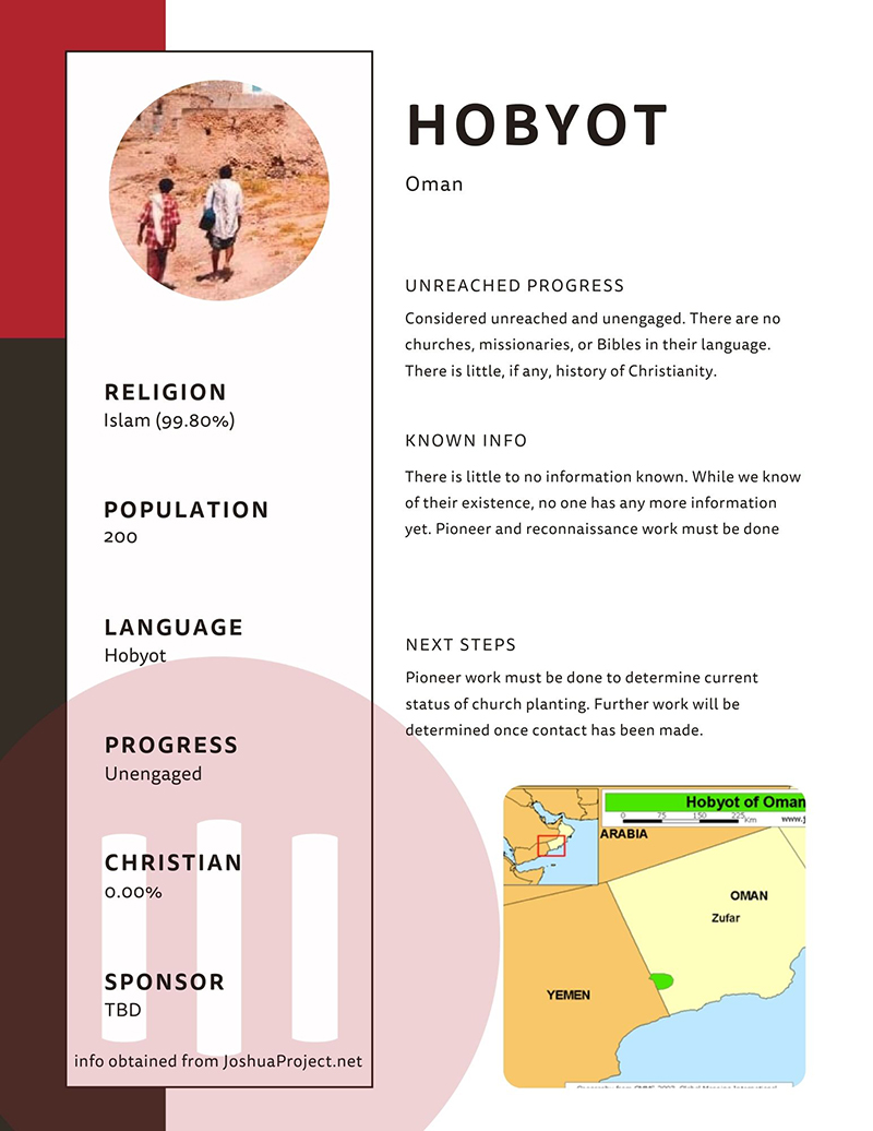 The people groups with a star below have a pioneer ready to visit them and are in need of a sponsor.