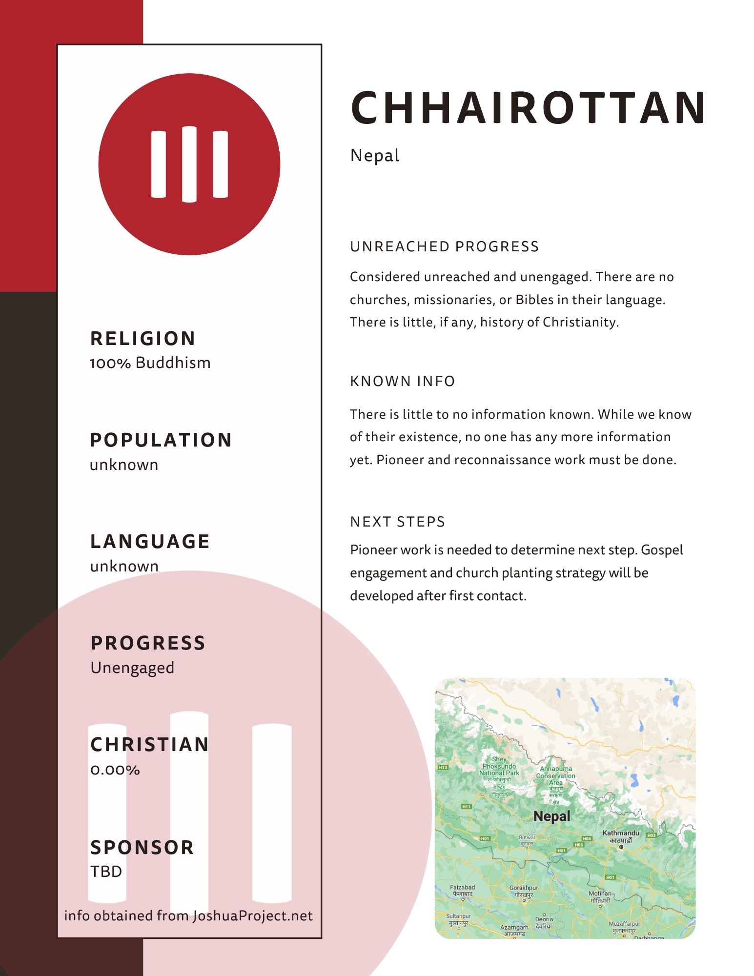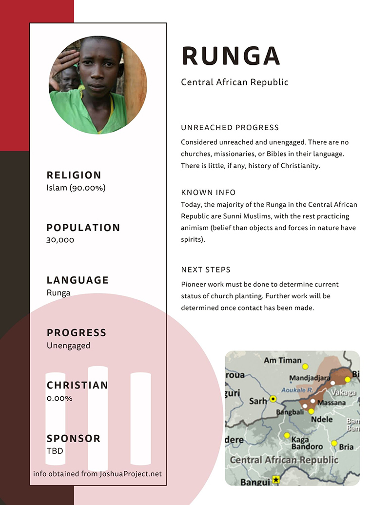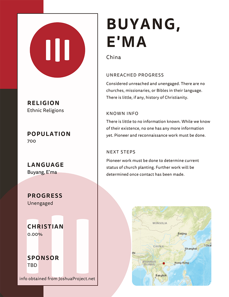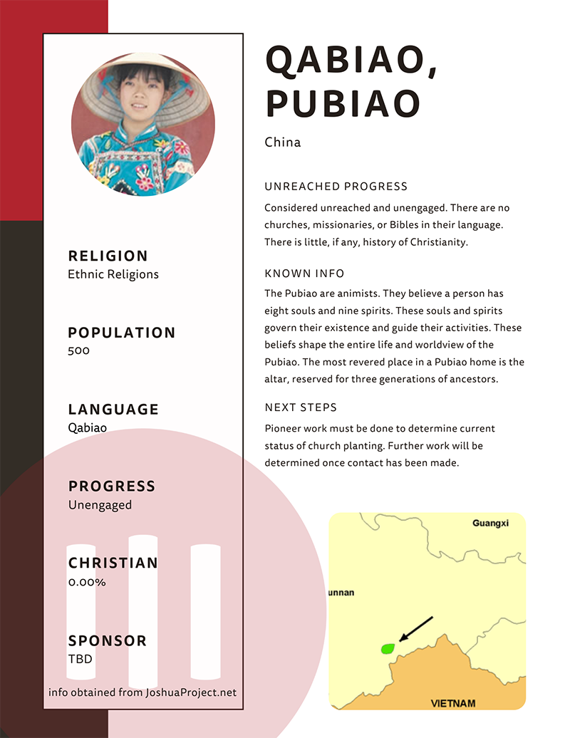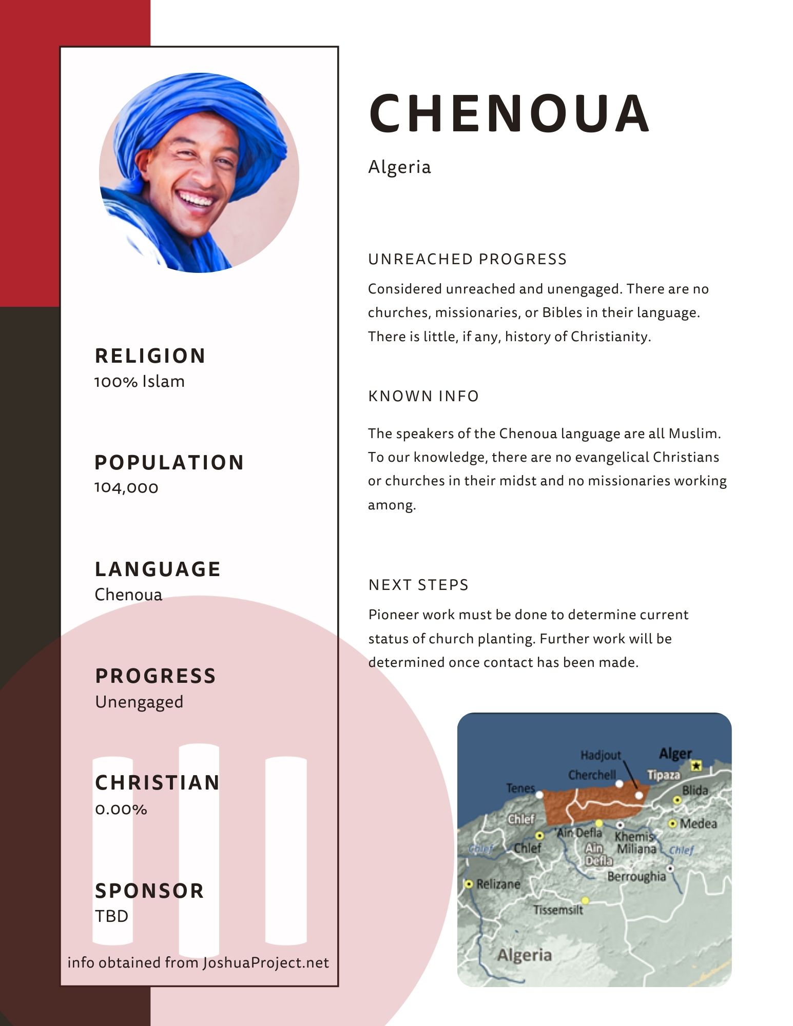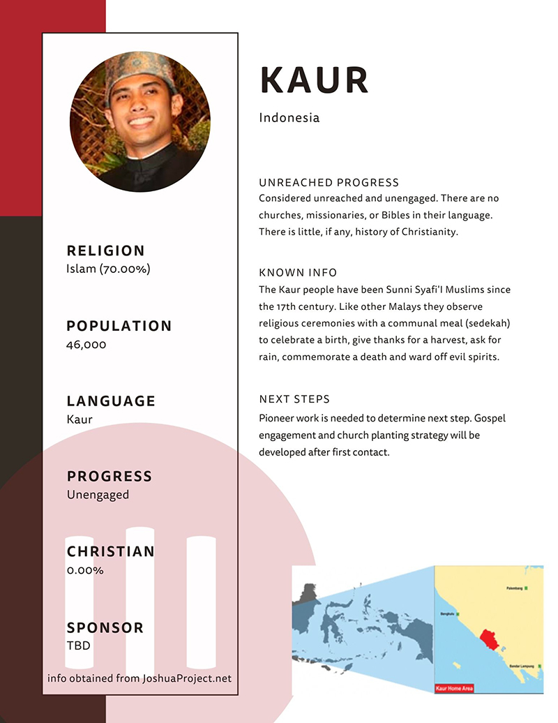 The people groups with a star below have a pioneer ready to visit them and are in need of a sponsor.