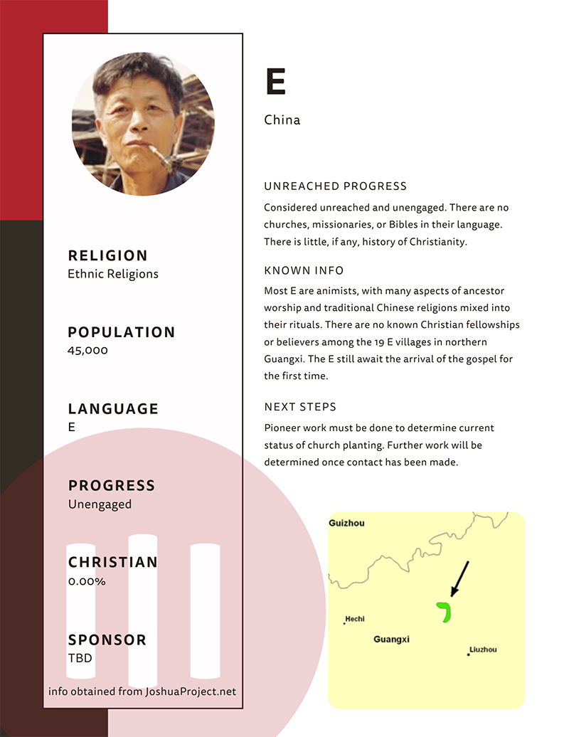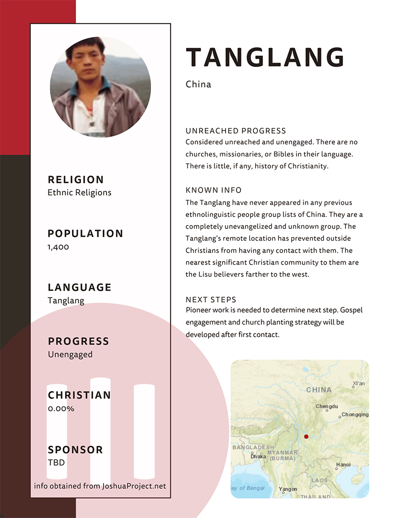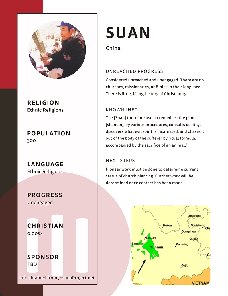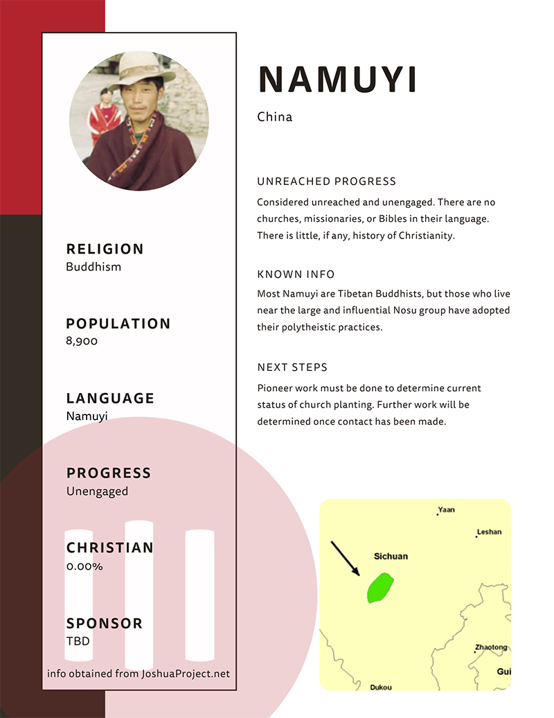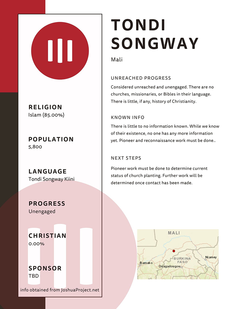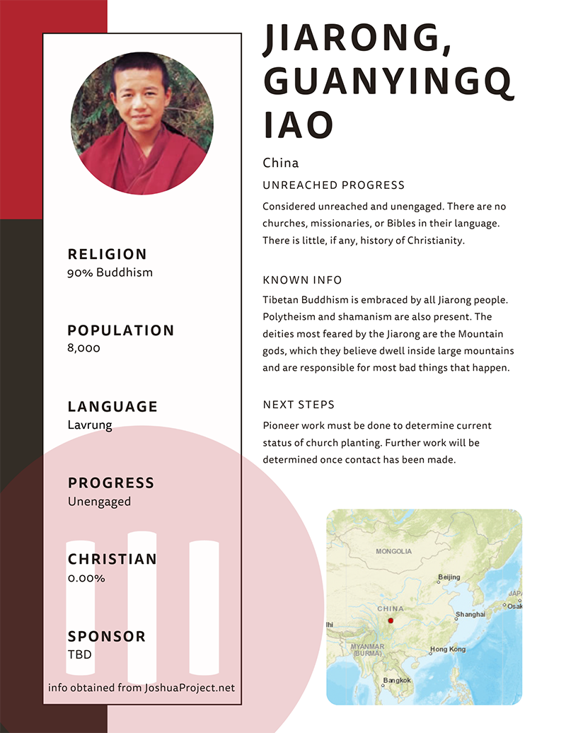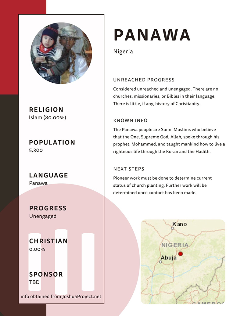 The people groups with a star below have a pioneer ready to visit them and are in need of a sponsor.