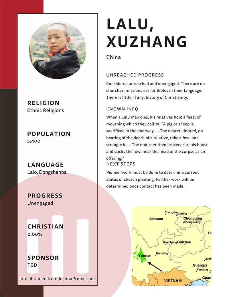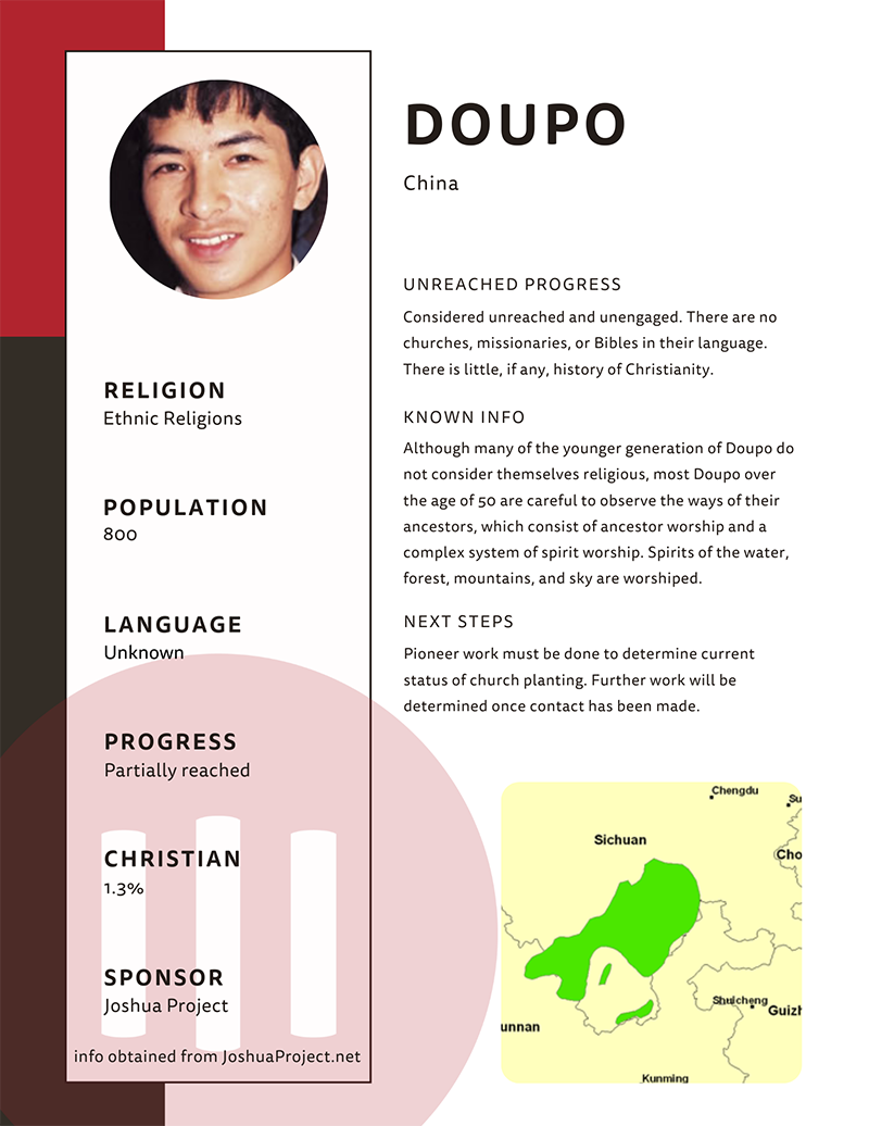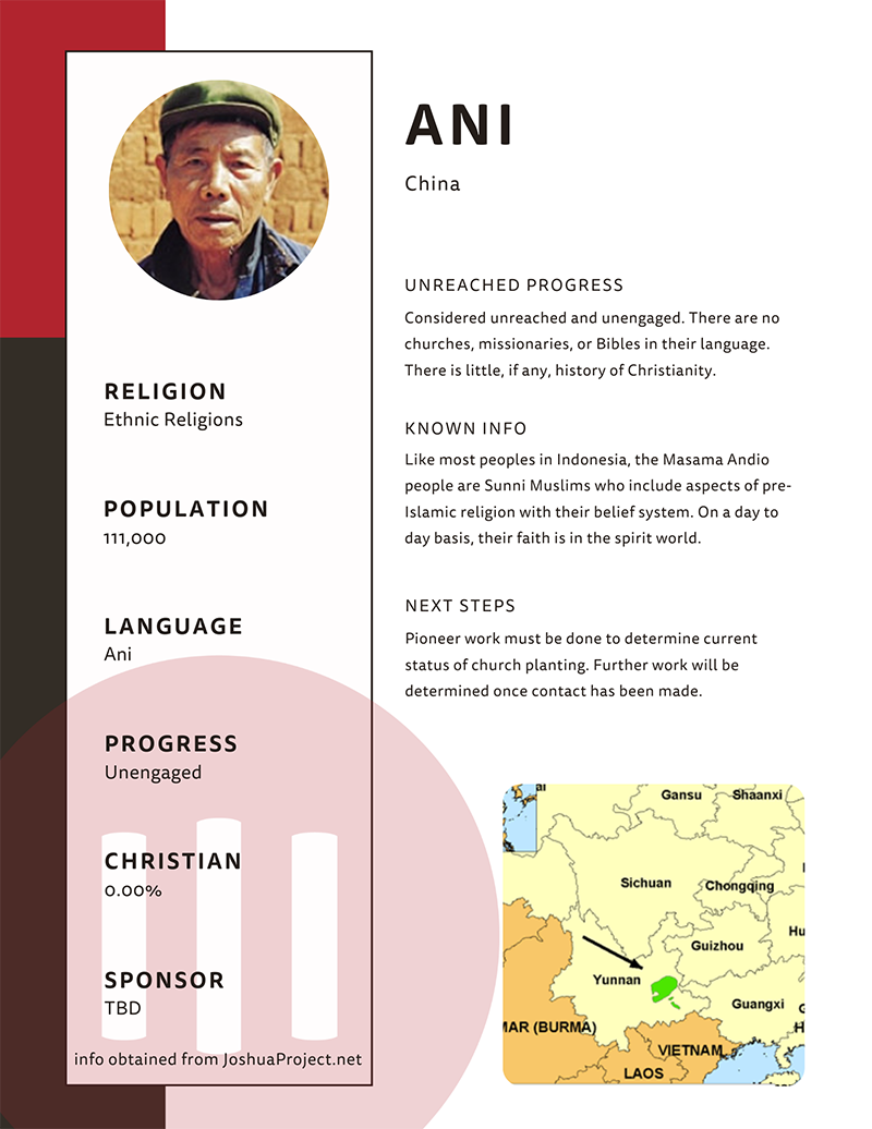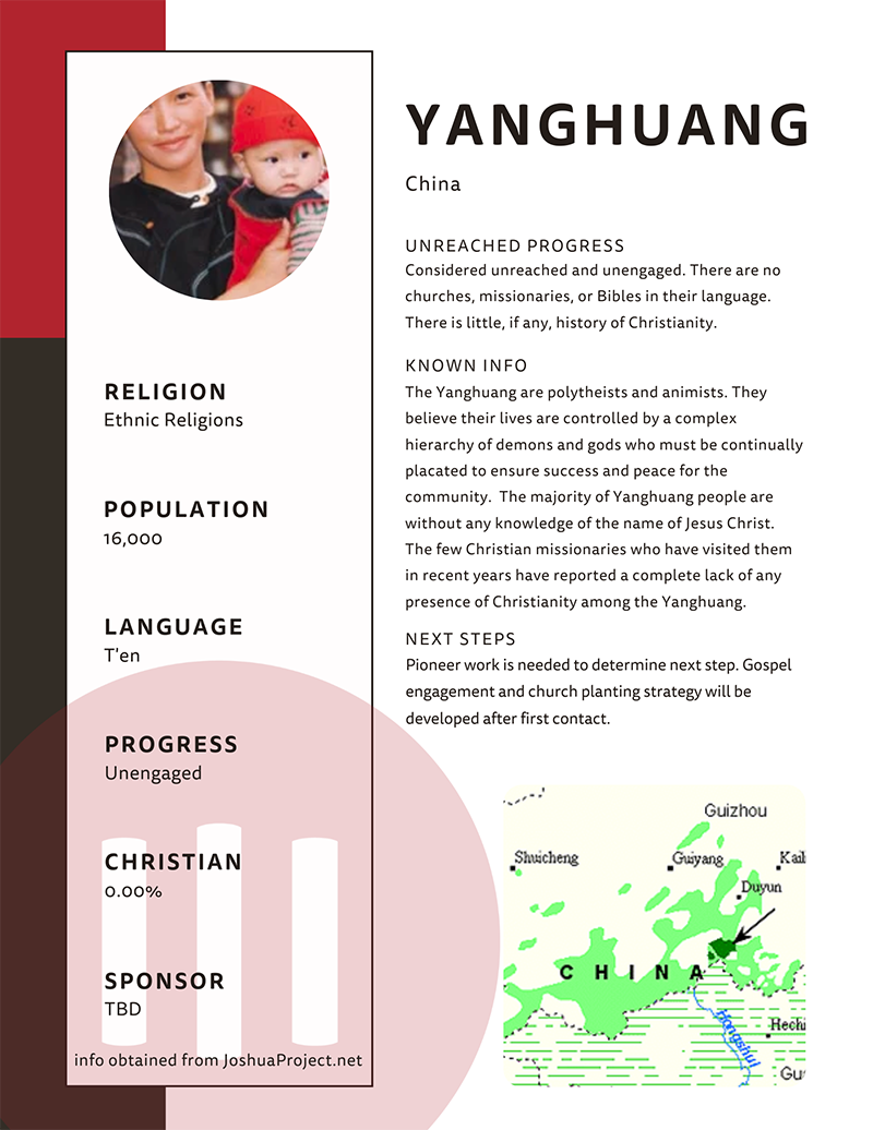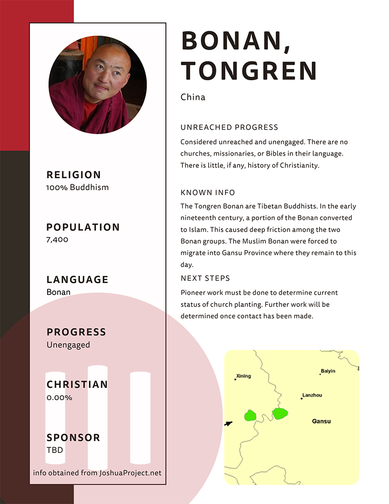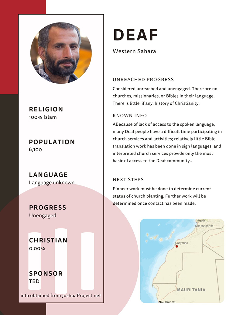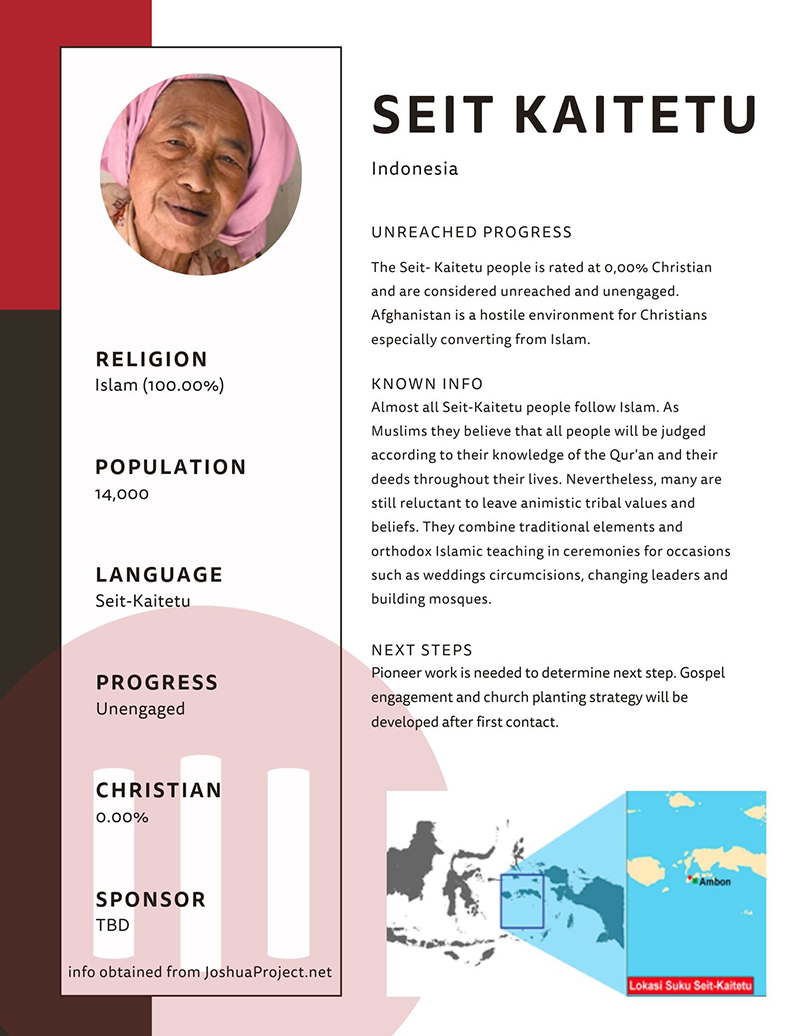 The people groups with a star below have a pioneer ready to visit them and are in need of a sponsor.