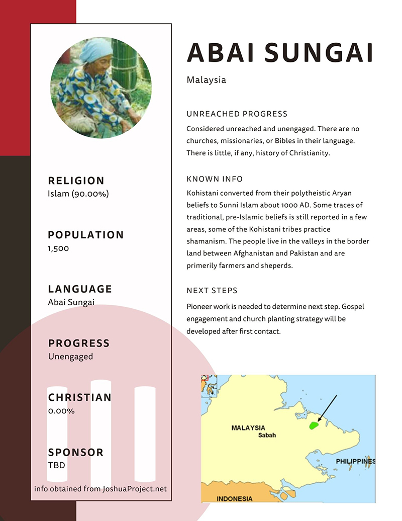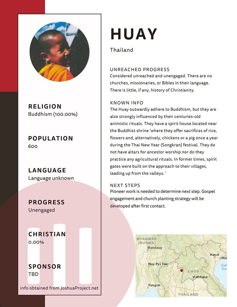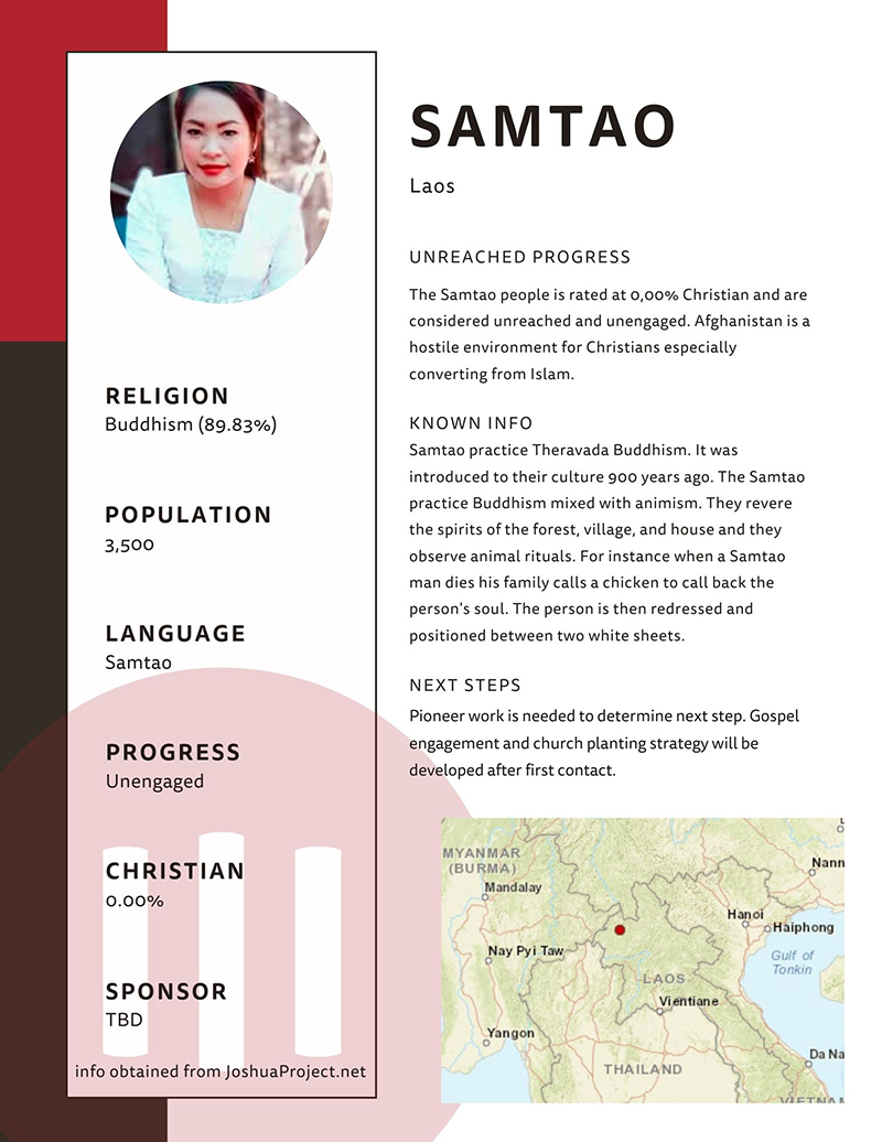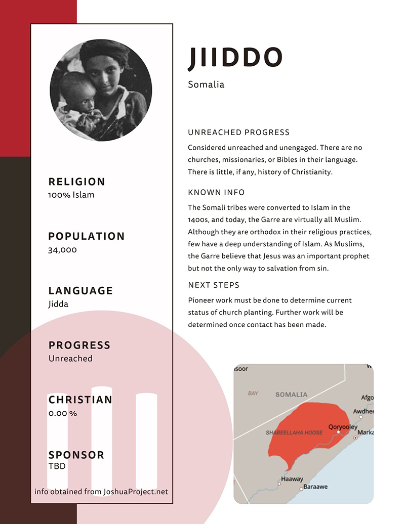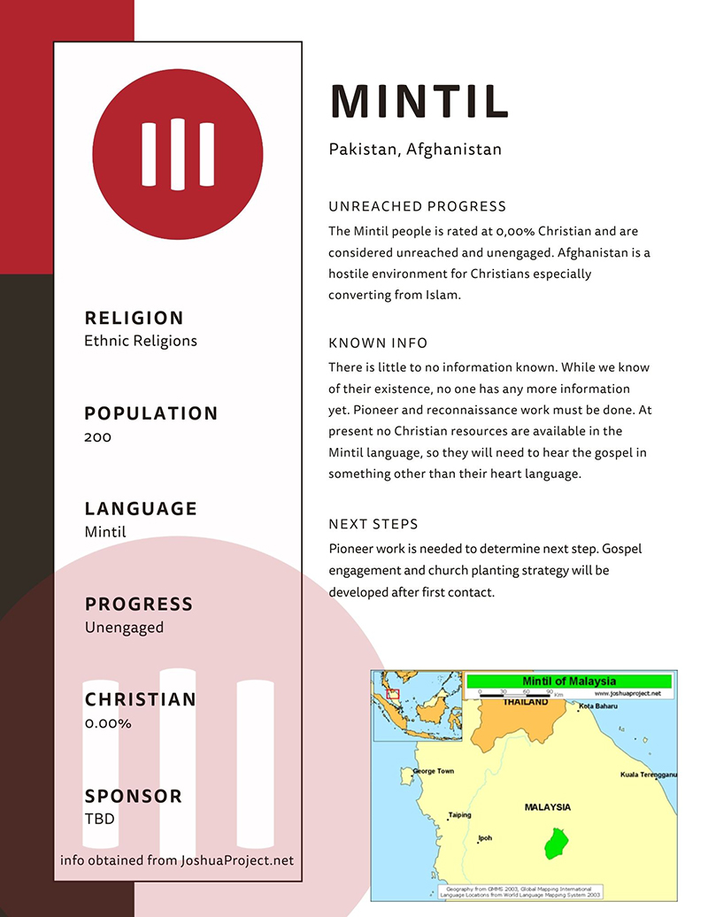 You can view these unreached groups by clicking on the name. If you want to save that tribe and start to pray for them, right click and download the prayer card to your computer.