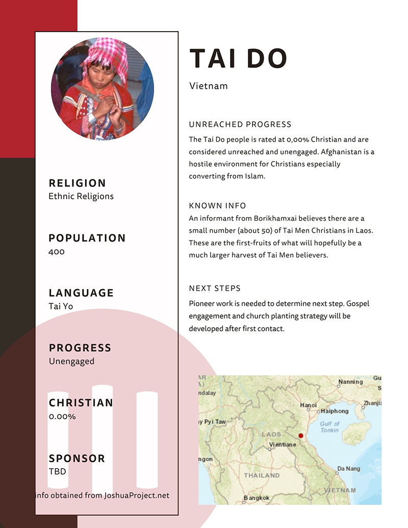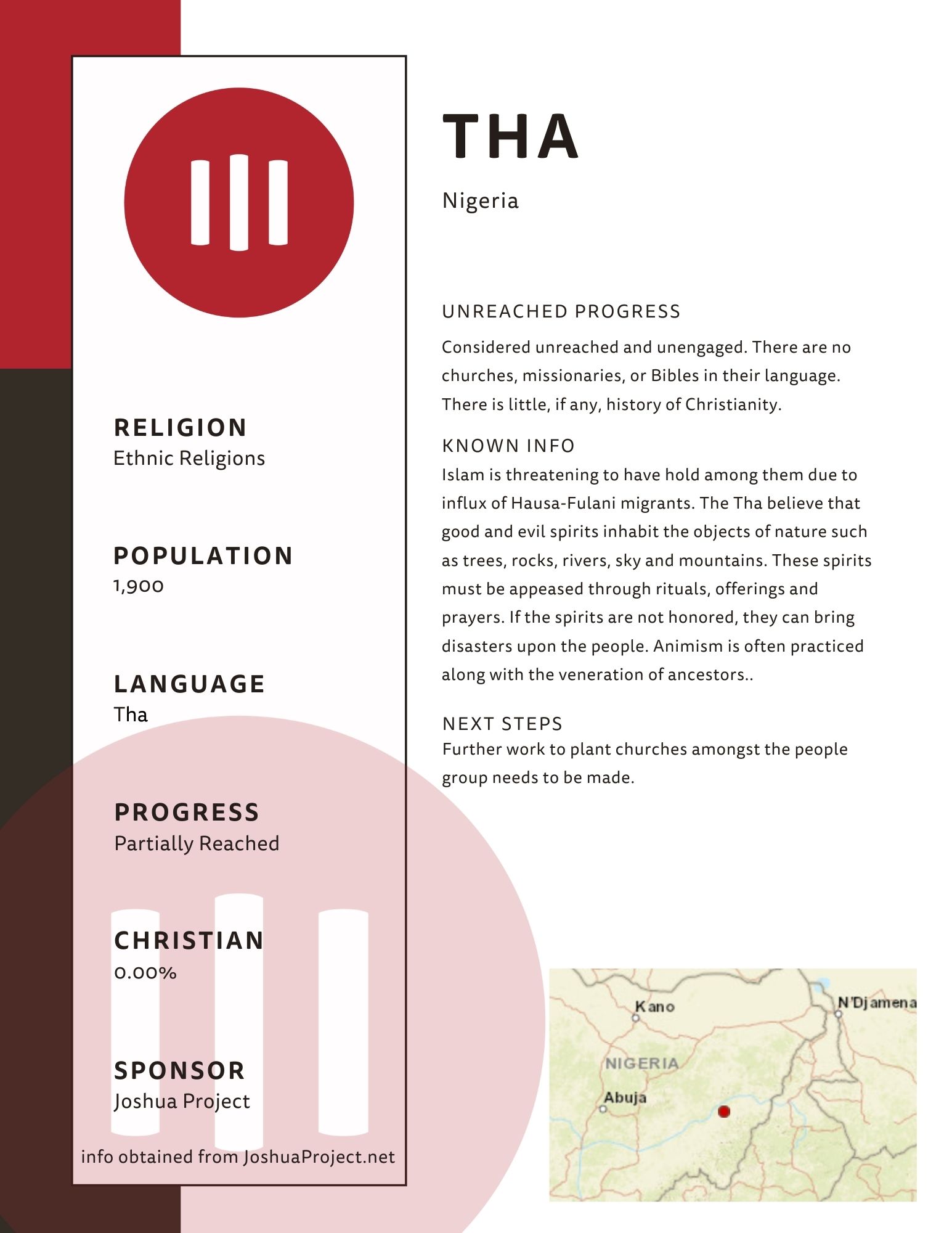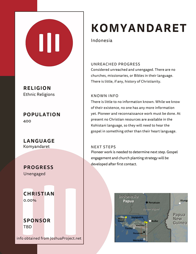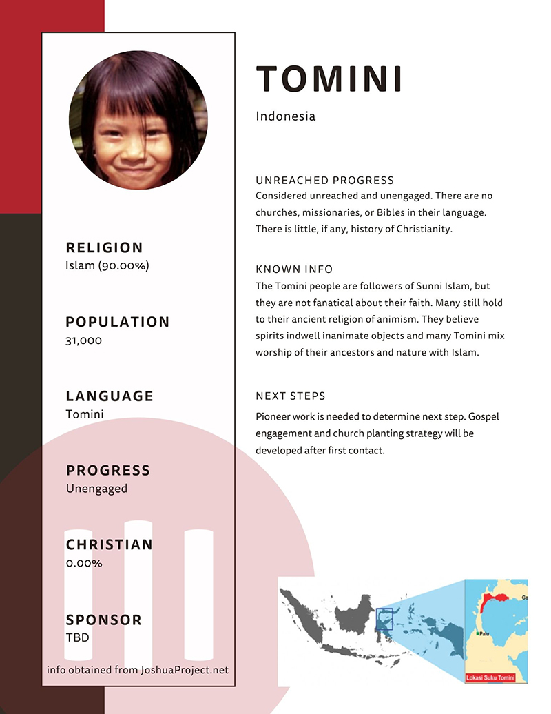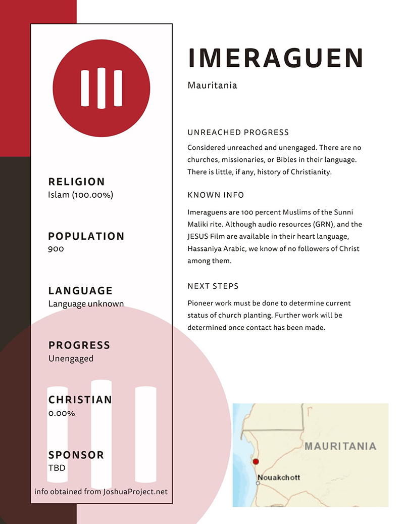 You can view these unreached groups by clicking on the name. If you want to save that tribe and start to pray for them, right click and download the prayer card to your computer.