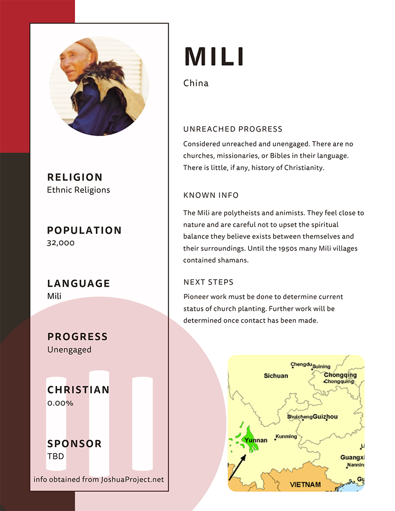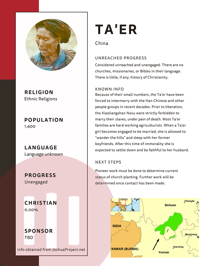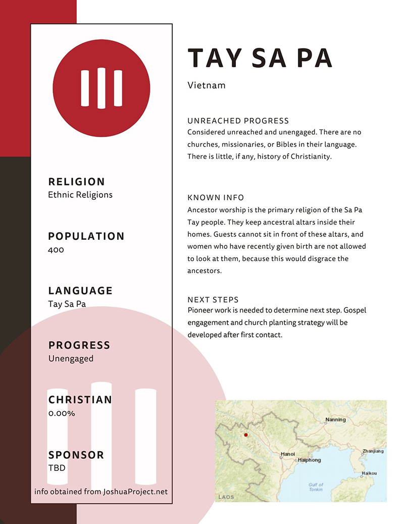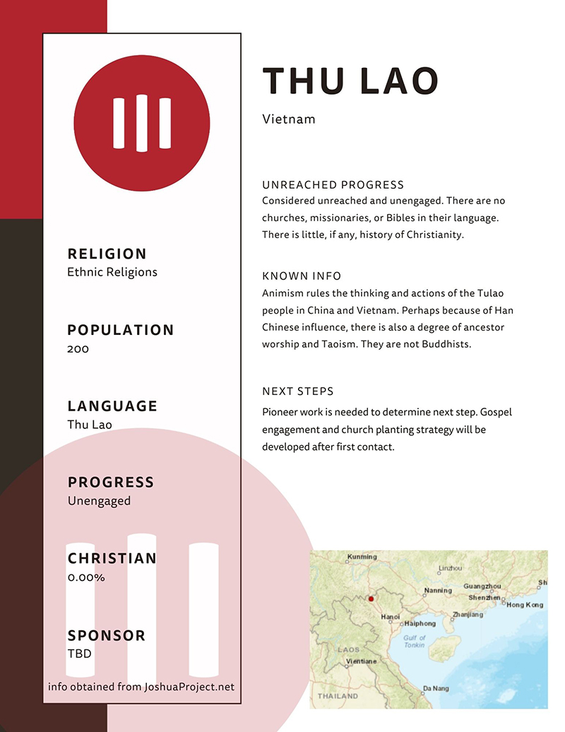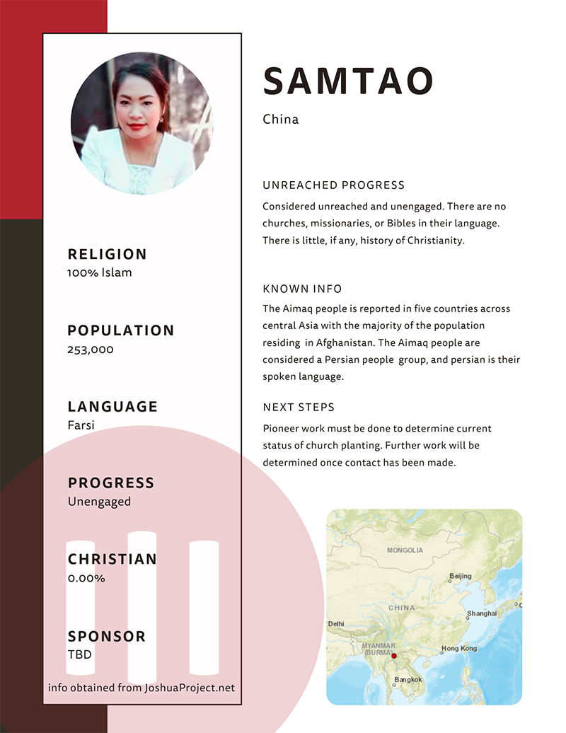 You can view these unreached groups by clicking on the name. If you want to save that tribe and start to pray for them, right click and download the prayer card to your computer.
